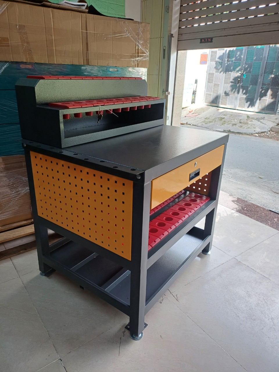 2 bên hông có tấm banel treo dụng cụ phần nửa trên tủ.