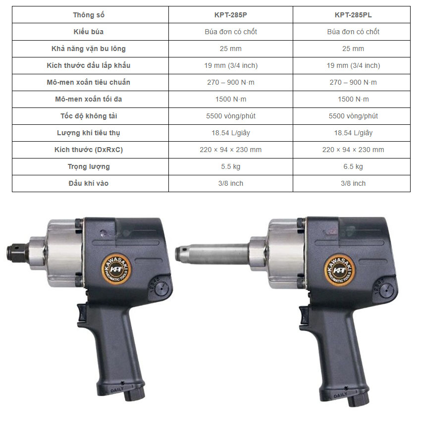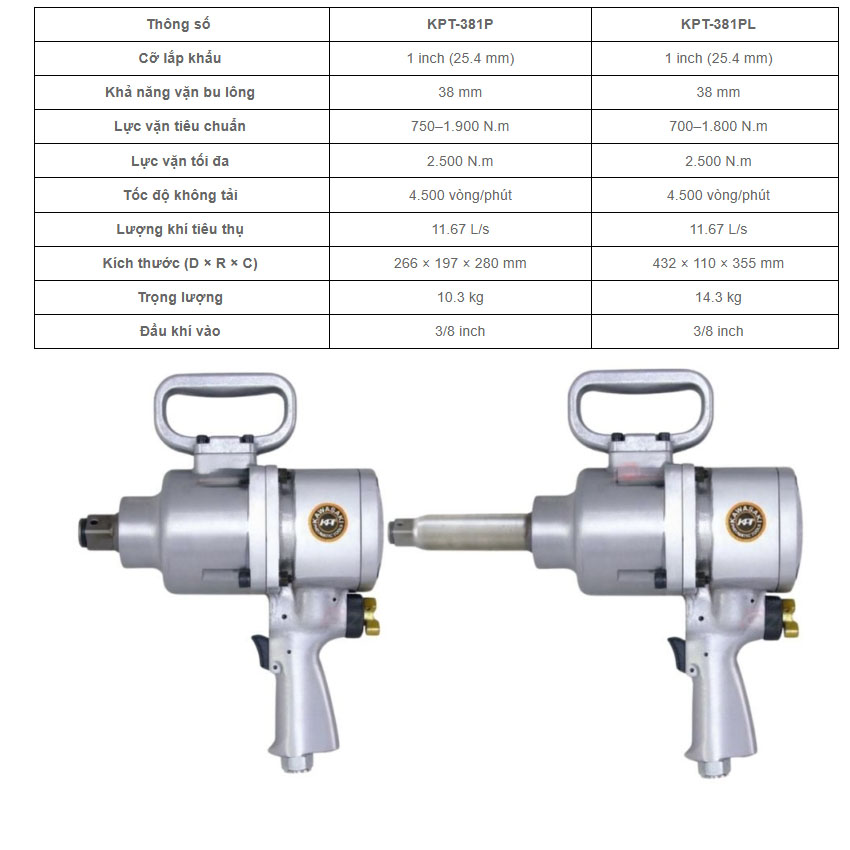 - Kích thước đầu lắp khẩu: 25.4 mm (1 inch)