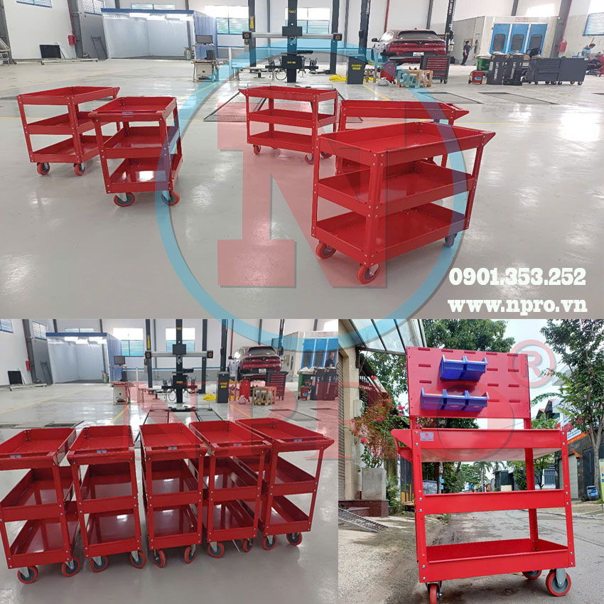 – Xe đẩy dụng cụ: xe đẩy 3 ngăn, xe đẩy kết hợp ngăn kéo và bảng treo dụng cụ