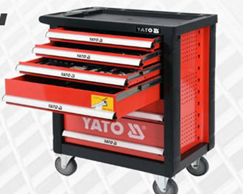 Tủ đồ nghề 6 ngăn 185 chi tiết Yato YT-55307, chuyên dùng cho các trạm bảo trì, bảo dưỡng honda, garage ô tô… Tủ đồ nghề 7 ngăn Yato có bánh xe kết hợp tay kéo thuận tiện di chuyển, phần nóc tủ được thiết kế dạng khay đựng đồ thuận tiện cho việc để các dụng cụ đang dùng tam thời, khay nhỏ dành cho việc chứa ốc vít.