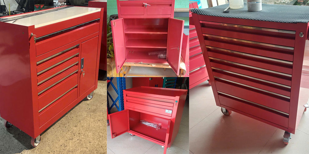 – Xe đẩy dụng cụ, xe đựng đồ nghề 3 ngăn có 1 ngăn kéo khóa