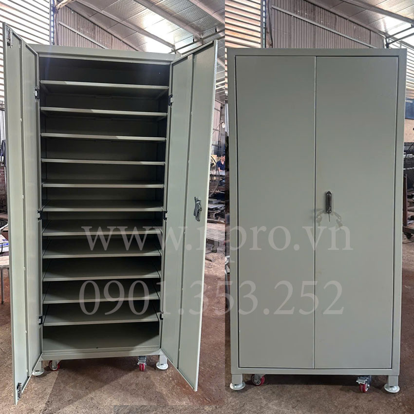 Tủ dụng cụ 2 cánh 11 khay KT: 850Wx500Dx1850Hmm sơn tĩnh điện