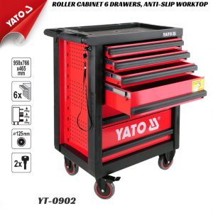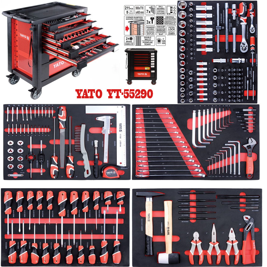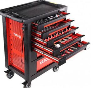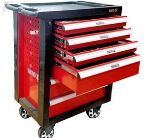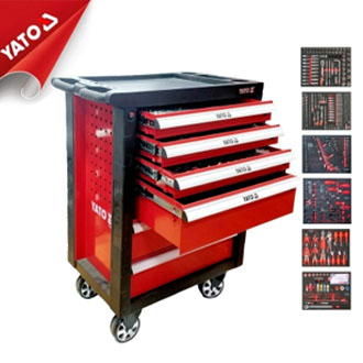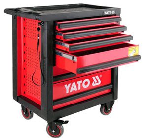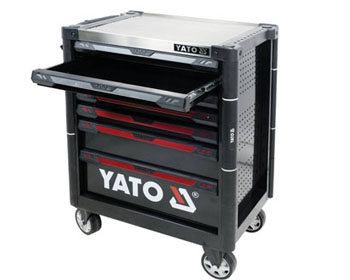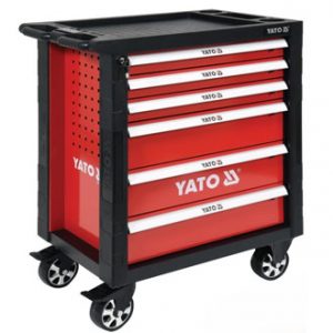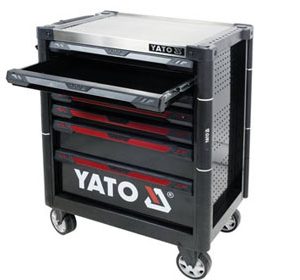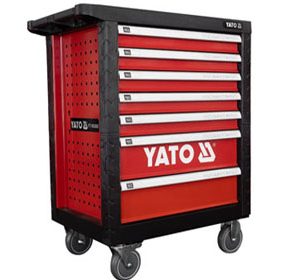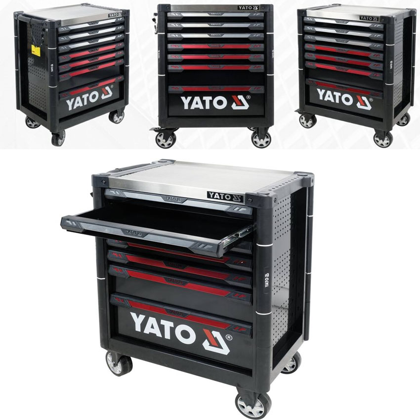 Tủ đựng đồ nghề 7 ngăn Yato YT-09032, Tủ đồ nghề 6 ngăn 185 chi tiết Yato YT-55307, chuyên dùng cho các trạm bảo trì, bảo dưỡng honda, garage ô tô… Tủ đồ nghề 7 ngăn Yato có bánh xe kết hợp tay kéo thuận tiện di chuyển, phần nóc tủ được thiết kế dạng khay đựng đồ thuận tiện cho việc để các dụng cụ đang dùng tam thời, khay nhỏ dành cho việc chứa ốc vít.