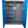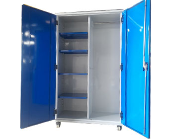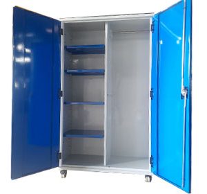 Tủ để đồ bảo hộ lao động được sản xuất chắc chắn, đảm bảo độ bền. Có 2 cánh cửa mở có khóa đảm bảo việc cất giữ đồ nghề.